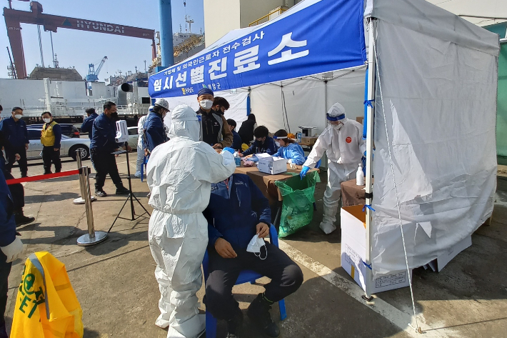 전라남도는 이와 관련해 이날 현대삼호중공업에 4곳, 대불산단 서부건강센터 등 2곳에 선별진료소를 긴급 설치하고 대불산단에서 일하고 있는 외국인 노동자에 대한 전수검사를 실시하고 있다.