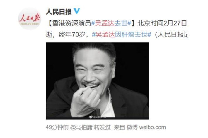성도일보 등 홍콩매체에 따르면 간암으로 투병해오다 최근 병세가 나빠진 우멍다가 이날 오후