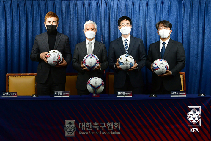 대한축구협회는 2일 서울시 종로구 신문로 축구회관에서 주식회사 ‘스포츠트라이브’와 2024년까지 4년간 공식 사용구 협찬 계약을 체결했다. 이날 조인식은 김병지 축구협회 부회장, 박경훈 전무와 ‘스포츠트라이브’의 황효진, 서정균 대표이사가 참석했다.