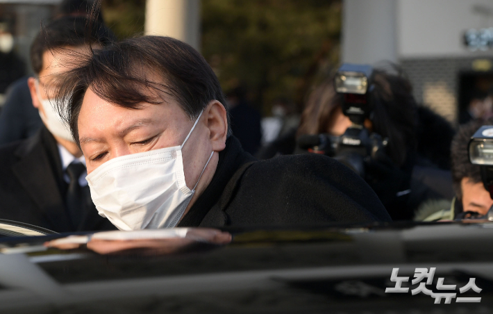 윤석열 검찰총장이 차량에 탑승하고 있다. 이한형 기자