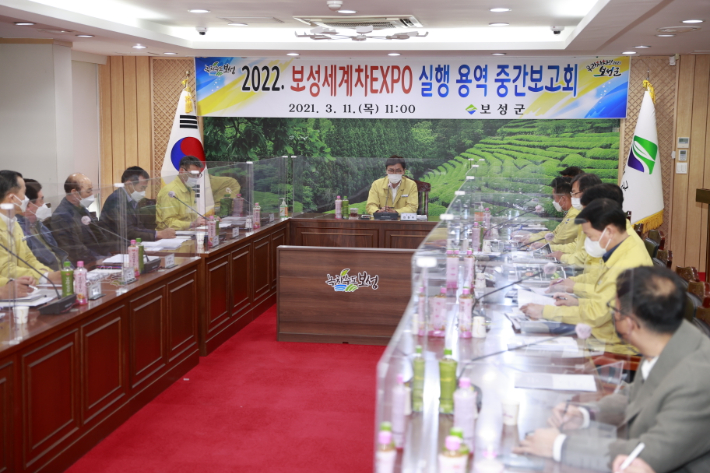보성군은 지난 11일 군청 소회의실에서 제10회 보성세계차엑스포 중간보고회를 실시했다. 보성군 제공
