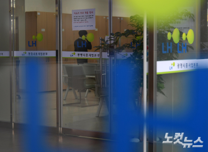 한국토지주택공사(LH) 임직원들의 신도시 투기 의혹과 관련해 경기남부경찰청 반부패경제범죄수사대가 지난 9일 경기도 광명시 LH 광명시흥사업본부의 압수수색을 실시하고 있다. 이한형 기자