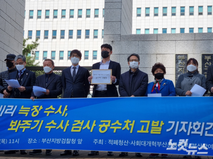 부산참여연대와 적폐청산·사회대개혁 부산운동본부(적폐청산본부)는 18일 오전 11시 부산지검 앞에서 기자회견을 열고, "지금 온 나라를 떠들썩하게 하는 엘시티 특혜명단 논란은 검찰의 부실 수사에 따른 결과"라며 당시 검찰 수사관련자들을 공수처에 고발한다고 밝혔다.