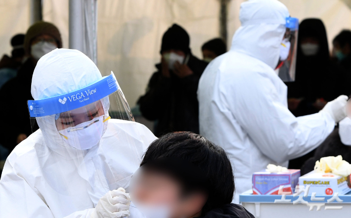 임시선별진료소를 찾은 시민들이 코로나19 검사를 받고 있다. 황진환 기자