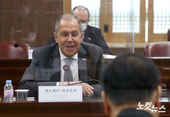 세르게이 라브로프 러시아 외무장관이 25일 서울 종로구 외교부 청사에서 열린 한-러 외교장관회담에서 발언하고 있다.