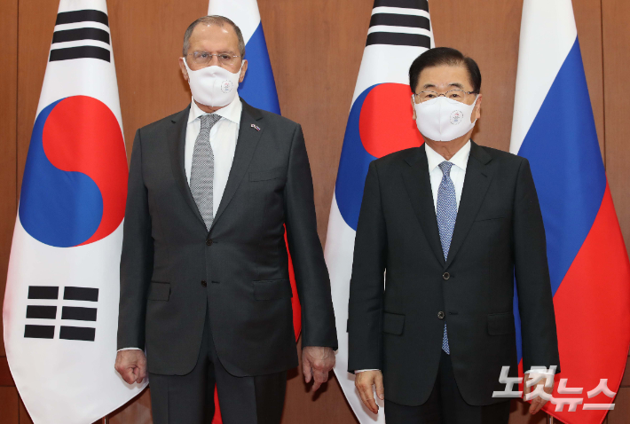 정의용 외교부 장관은 25일 한러 외교장관 회담 뒤 언론 발표문을 통해 "우리 측은 한반도의 완전한 비핵화와 항구적 평화 정착을 위해 러시아 정부가 여러 제안과 함께 남북관계 증진 및 한반도평화프로세스를 일관되게 지지한 것을 평가하고 앞으로도 러시아가 건설적인 역할을 계속해 줄 것을 강조했다"며 이같이 밝혔다.