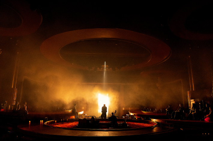 관객들은 공연장 내부로 들어서자 "와" 하는 탄성을 내질렀다. 빨간색 카펫이 깔린 7개의 곡선 무대가 자리잡은 가운데, 무대 사이 공간에 일명 '코멧석'을 설치했다. 덕분에 관객은 직접 공연에 참여하는 느낌을 받는다. 보통 무대 아래 보이지 않는 곳에 위치한 오케스트라를 한 눈에 볼 수 있는 것도 반갑다. 김문정 음악감독이 이끄는 오케스트라는 무대 왼편에 모여 있다.