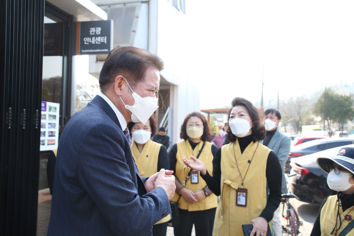 최대호 안양시장은 3월 31일 관광종합안내센터를 방문해 관련 공무원들로부터 시설 운영 전반을 보고받았다. 안양시청 제공