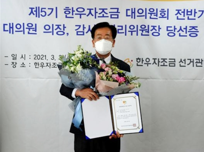 3선에 성공한 민경천 한우자조금관리위원회 위원장. 한우자조금관리위원회 제공
