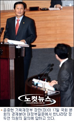 윤증현 기획재정부 장관은 17일 국회 본회의 경제분야 대정부질문에서 정두언 한나라당 의원의 질의에 대해 ''''좋은 제안에 감사한다''''며 ''''신빈곤층과 저소득층에 대한 푸드 스탬프와 쿠폰제 등 모든 방법을 강구할 계획''''이라고 밝혔다.