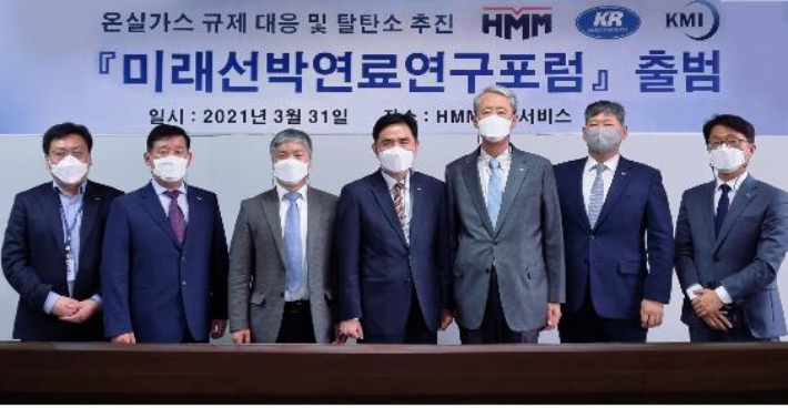 한국선급(KR)은 에이치엠엠오션서비스(HMM OS)와 한국해양수산개발원(KMI)과 함께 에이치엠엠오션서비스에서'미래선박연료 연구포럼'출범식을 가졌다고 6일 밝혔다.