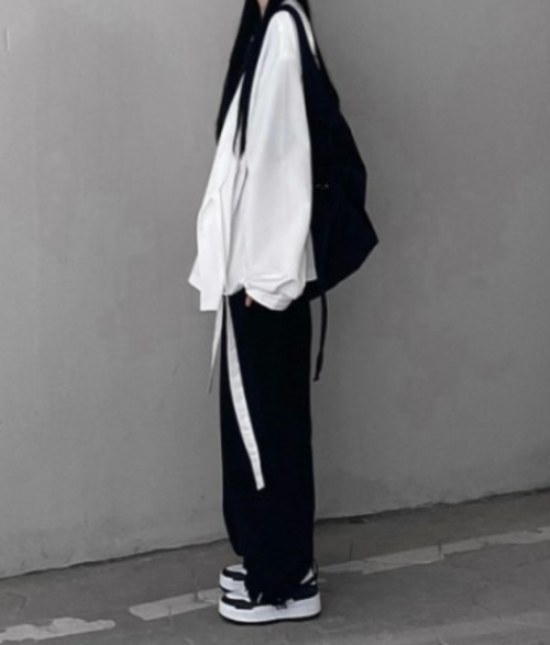 이런 스타일은 주로 어글리슈즈라고 불리는 발볼이 넓고 투박하게 생긴 운동화와 매치해서 패션을 완성하는 경우가 대표적이라고 할 수 있겠습니다. 또 이제는 하의만 스포츠웨어로 입는 게 아니라 상의와 하의를 같은 디자인의 트레이닝복으로 매치해서 '트레이닝 셋업'으로 입는 방식도 인기를 끌고 있는데요. 뭔가 과거에는 트레이닝복을 입는 게 '대학생 시험 기간 패션', '편의점 패션'이라고 불렸다면 이제는 트레이닝복을 이용해서 개성 있게 스타일링을 하는 게 오히려 멋스러운 거라고 인식되는 거죠.