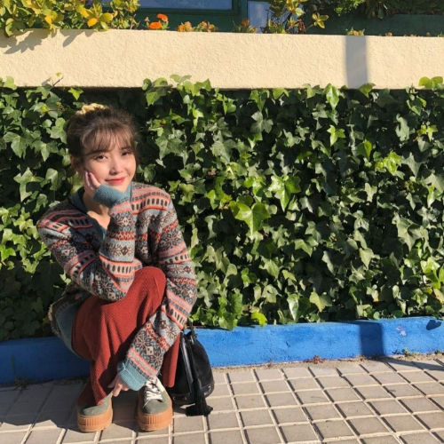 할머니들이 입는 옷을 연상시키는 '할미룩'. 아이유 인스타 캡처