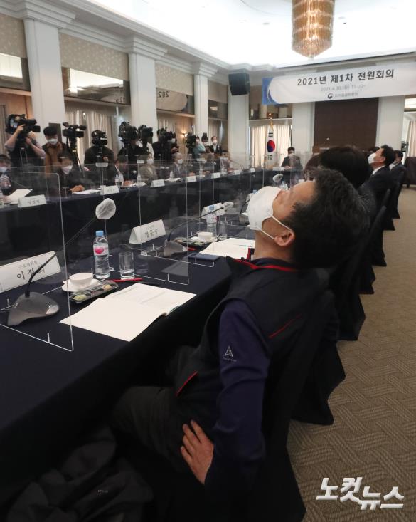20일 오후 서울 중구 한국프레스센터에서 최저임금을 심의, 의결하는 기구인 최저임금위원회가 내년도 최저임금 결정을 위해 올해 첫 전원회의를 열고 있다.