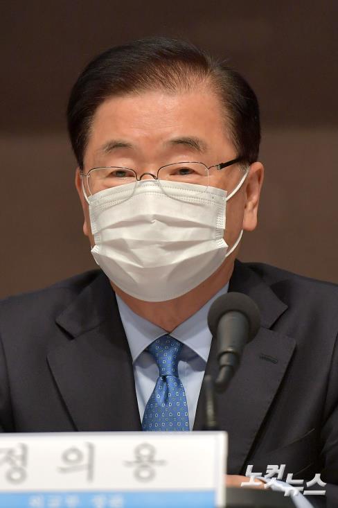 정의용 외교부 장관이 21일 서울 중구 프레스센터에서 열린 관훈토론회에 참석, 기조발언을 하고 있다.