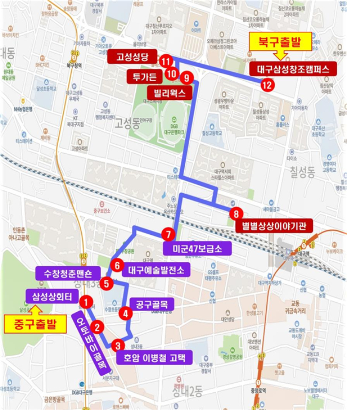 중구는 삼성상회부터, 북구는 거꾸로 삼성창조캠퍼스부터 출발하는 식으로 운영한다.