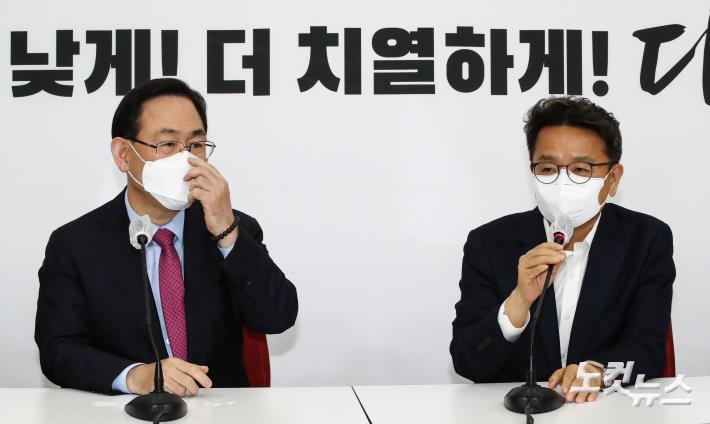 국민의힘 주호영 대표 권한대행과 만나는 이철희 청와대 정무수석