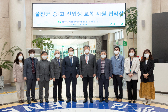 한국수력원자력(주) 한울원자력본부는 22일 울진교육지원청(교육장 권오진)과 2021년 울진군 중·고등학교 신입생 교복 지원 협약을 체결했다.