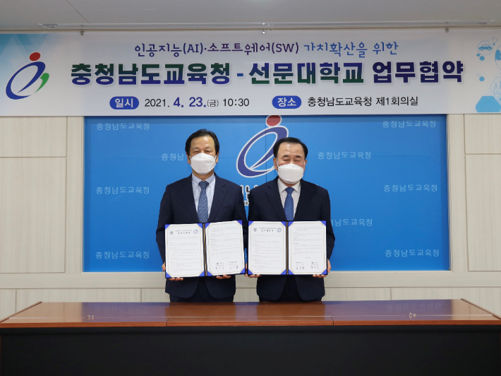 충남도교육청(김지철 교육감)은 선문대학교와 인공지능 소프트웨어교육 가치 확산 및 활성화를 위한 업무협약을 23일 체결했다고 밝혔다.