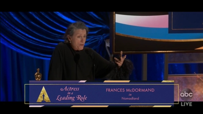 영화 '노매드랜드'의 배우 프란시스 맥도맨드가 제93회 아카데미 시상식에서 여우주연상을 수상했다.