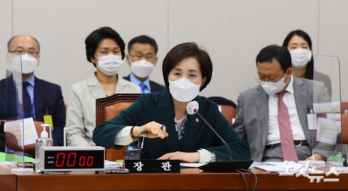 답변하는 유은혜 사회부총리 겸 교육부 장관