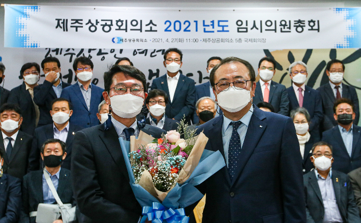 제주상공회의소는 27일 오전 상의 국제회의장에서 '2021년도 임시의원총회'를 열어 참석자 70명의 만장일치로 양문석 세기건설 대표를 제24대 회장에 추대했다고 밝혔다.
