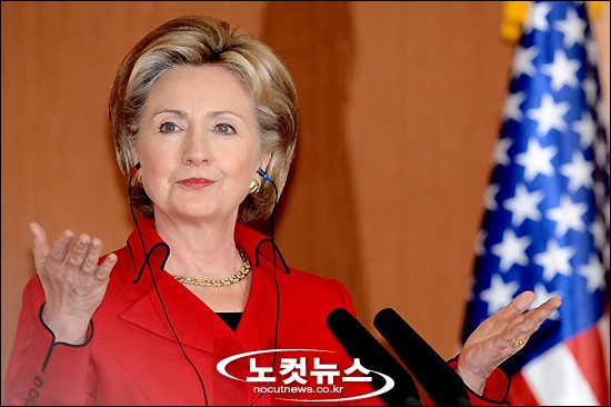 [BestNocut_R]아시아 순방 3번째 국가로 한국을 찾은 힐러리 클린턴(Hillary Clinton) 미 국무장관이 20일 오전 서울 도렴동 외교통상부에서 열린 한·미 외교장관 공동 기자회견에서 회담 결과를 설명하다 ''의아하다''는 제스쳐를 취하고 있다.