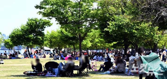 서울 한강공원을 찾은 시민들. 황진환 기자