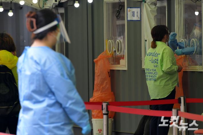 임시선별검사소에서 시민들이 검사를 받고 있다. 박종민 기자