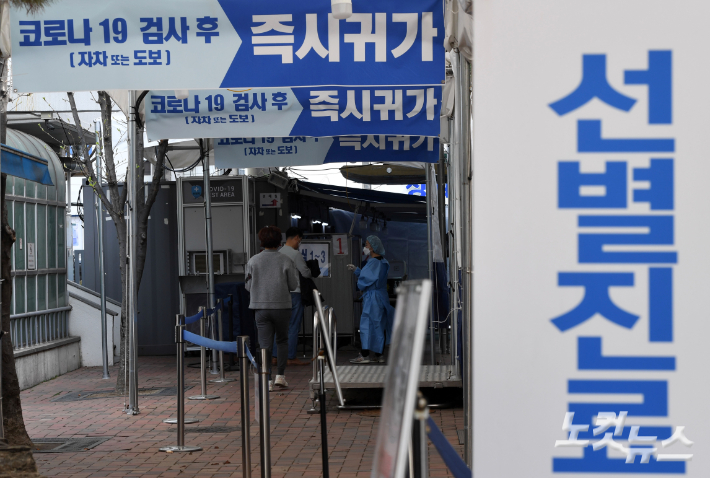 서울 영등포보건소에 마련된 선별진료소에서 시민들이 검사를 받기 위해 대기하고 있다. 황진환 기자