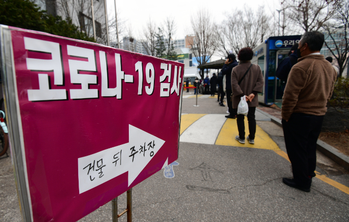 12일 코로나19 신규확진자가 488명으로 나흘연속 400명대를 기록하며 재확산 우려가 커지는 가운데, 정부는 오는 14일 종료 예정인 현행 거리두기(수도권 2단계, 비수도권 1.5단계)와 직계 가족을 제외한 5인 이상 사적모임 금지 조처를 2주 재연장하기로 했다. 이날 오전 서울 강서보건소 선별진료소를 찾은 시민들이 코로나19 검사를 받기 위해 줄서 대기하고 있다. 황진환 기자