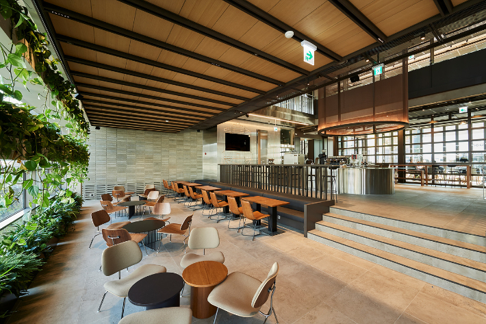 또 매장 곳곳에 스킨답서스, 극락조 커피나무 등 매장 내 유리창과 테라스에 식물을 배치했다.