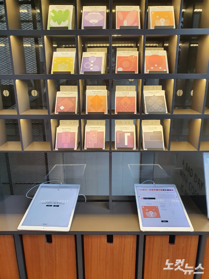 공감각 커피 전용석에 마련된 태블릿 기기를 통해 자신의 취향에 맞는 커피의 향미, 산미, 로스팅 정도를 고르면 16종의 커피 중 하나가 선택된다. 커피에 어울리는 음악과 시도 함께 제공된다.