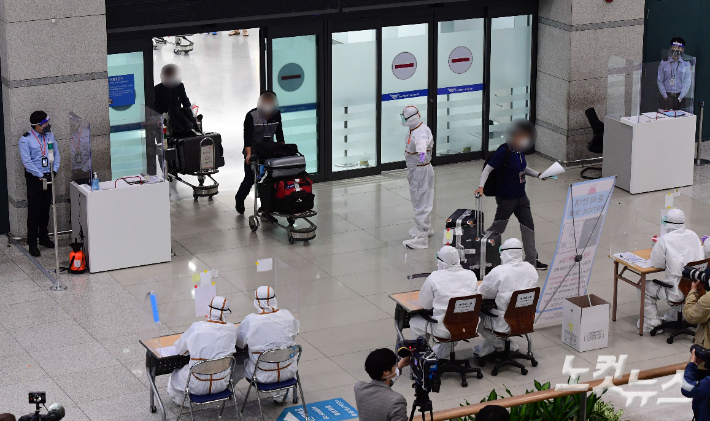 인도의 우리 교민들이 지난 4일 오전 인천공항을 통해 귀국하고 있다. 황진환 기자
