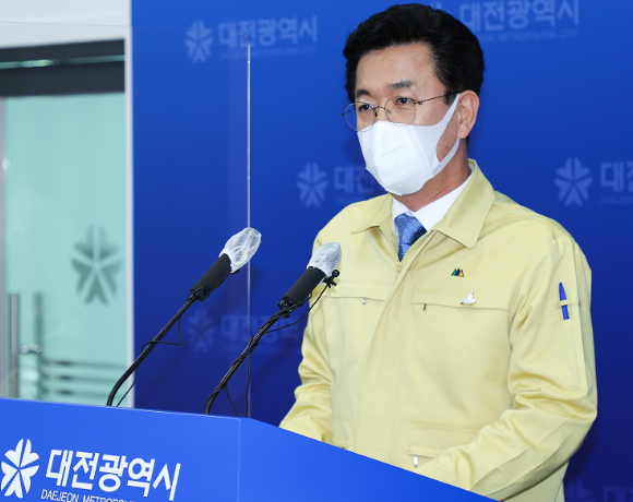 허태정 대전시장이 공공기관 대전 이전과 관련해 설명하고 있다. 대전시 제공