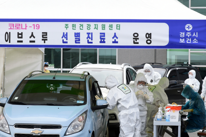 경주시 보건소 관계자가 검체검사를 실시하고 있다. 경주시 제공