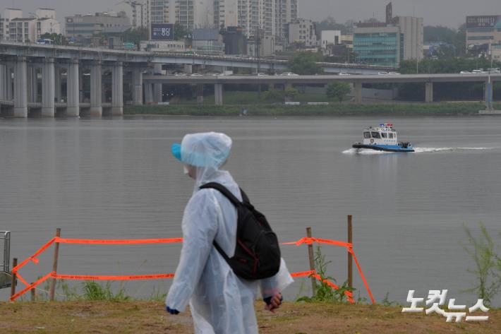 17일 서울 서초구 반포한강공원 수상택시 승강장 인근에서 한강경찰대가 故 손정민씨 친구의 휴대전화 수색 작업을 하고 있다.