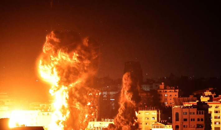 17일 새벽 이스라엘의 폭격으로 불타는 가자지구의 건물들. 연합뉴스
