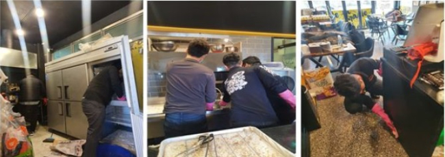 썬더치킨 부산경남지사 직원들이 영업 시작 전 가맹점 청소를 지원하고 있다. 썬더치킨 부산경남지사 제공