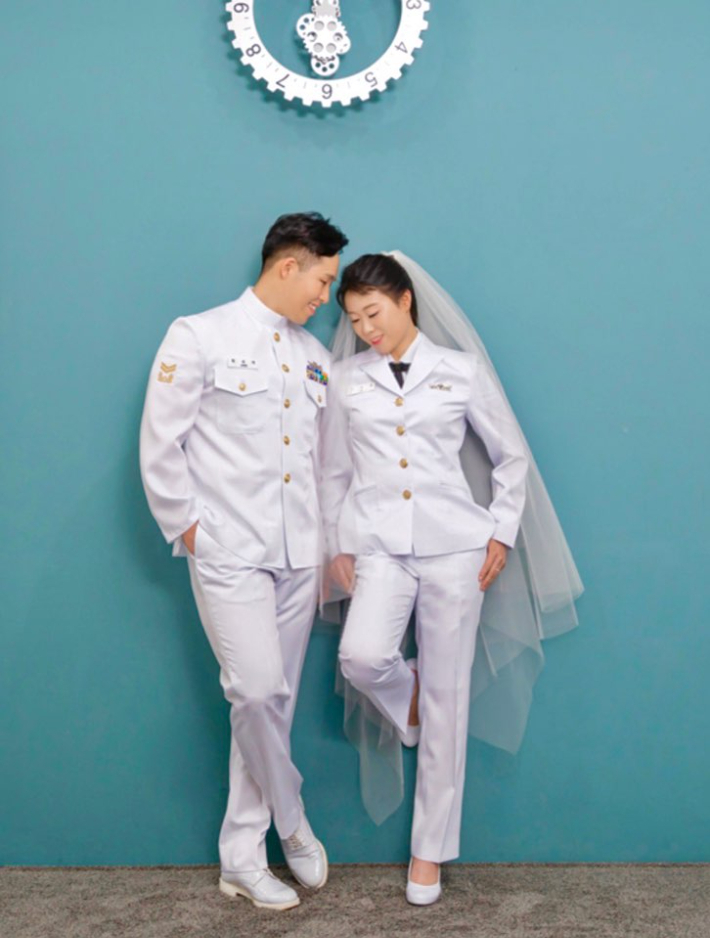 이병윤 중사는 해군 부사관 232기, 유란희 군무원은 221기로 11기수나 차이나는 선후배로 처음 만났다. 하지만 이 중사의 적극적인 구애 끝에 연애를 시작하게 됐고, 3년 전 결혼에 골인했다. 현재 군인과 군인이 아닌 군무원으로서 국가 안보를 위해 힘쓰고 있다.