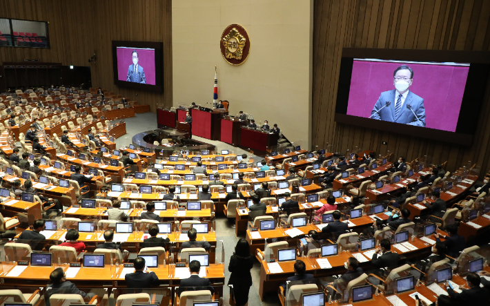 지난 21일 오전 서울 여의도 국회 본회의장에서 열린 제387회 국회(임시회) 제2차 본회의. 연합뉴스