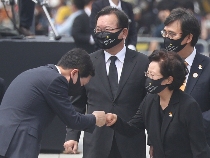 김 원내대표는 추도식에서 노 전 대통령의 부인 권양숙 여사를 비롯해 더불어민주당 송영길 대표, 김부겸 국무총리, 정세균 전 총리, 유시민 노무현재단 이사장 등과 인사를 나눴다.