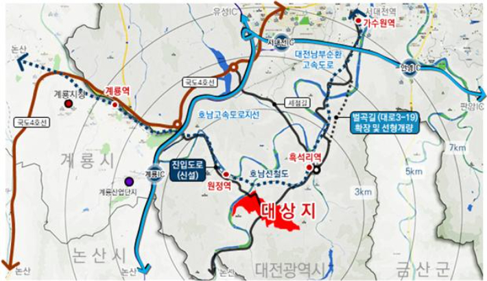 시는 산단에 입주하는 기업들의 접근성을 높이기 위해 377억원을 들여 평촌산단과 유성구 방동까지 3km를 잇는 산업단지 진입도로를 깔고 있다.