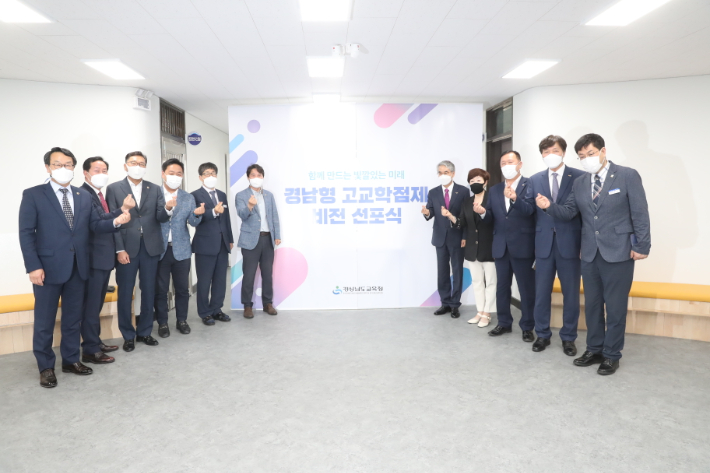경남교육청은 24일 창원남산고등학교에서 고교학점제의 성공적 안착을 위한 '경남형 고교학점제 종합추진계획' 선포식을 가졌다. 선포식에는 박종훈 교육감을 비롯해 송순호 도의회 교육위원장과 교육위원들, 민기식 경남도 통합교육추진단 단장, 고교학점제 전면 시행 첫 적용을 받는 초등학교 6학년 학부모 20명 등이 참석했다.