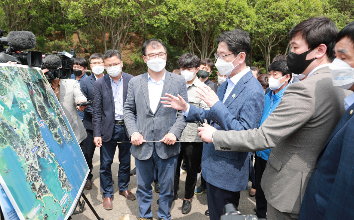 지난 18일, 김경수 경남지사가 남해-여수 해저터널 건설 필요성을 강조하며 남해-여수 해저터널 건설 예정지를 방문했다. 경남도청 제공