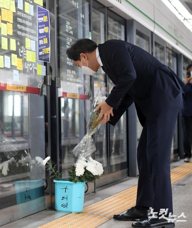 구의역 찾아 김군 추모하는 오세훈 서울시장