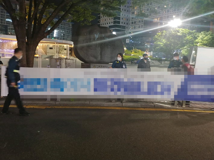 A씨의 행동으로 현수막 끈은 끊어졌지만, 가로 7m, 세로 1m 크기의 현수막은 훼손되지 않았다고 경찰은 전했다.