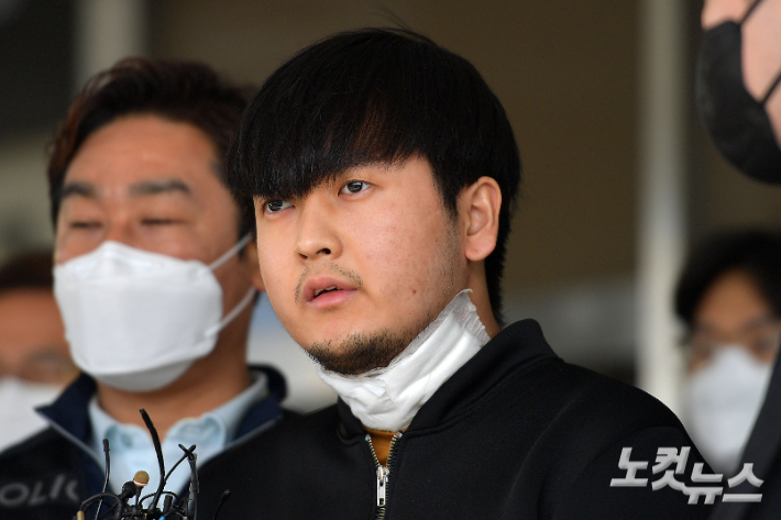 서울 노원구 아파트에서 세 모녀를 살해한 혐의를 받는 김태현(만24세)이 지난 4월 9일 오전 서울 도봉경찰서에서 서울북부지검으로 송치되고 있다. 박종민 기자