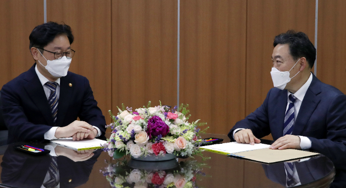 박범계 법무부 장관과 김오수 검찰총장이 3일 검찰 인사와 조직개편을 두고 2시간 가량 협의를 했지만, 합의를 이루진 못한 것으로 보인다.