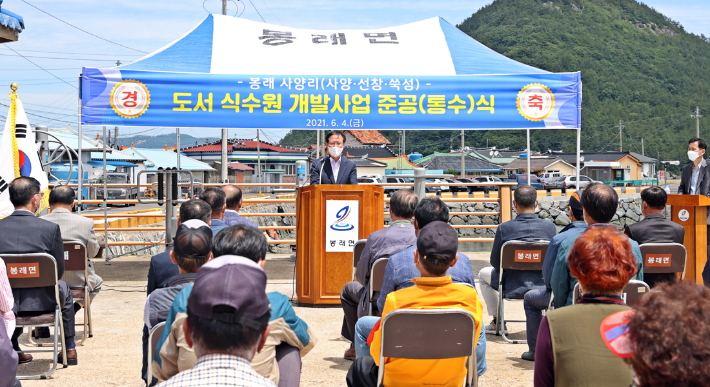 지난 2019년 4월 착공한 봉래면 사양리 도서지역 식수원 개발 사업을 완료한데 따른 행사다.